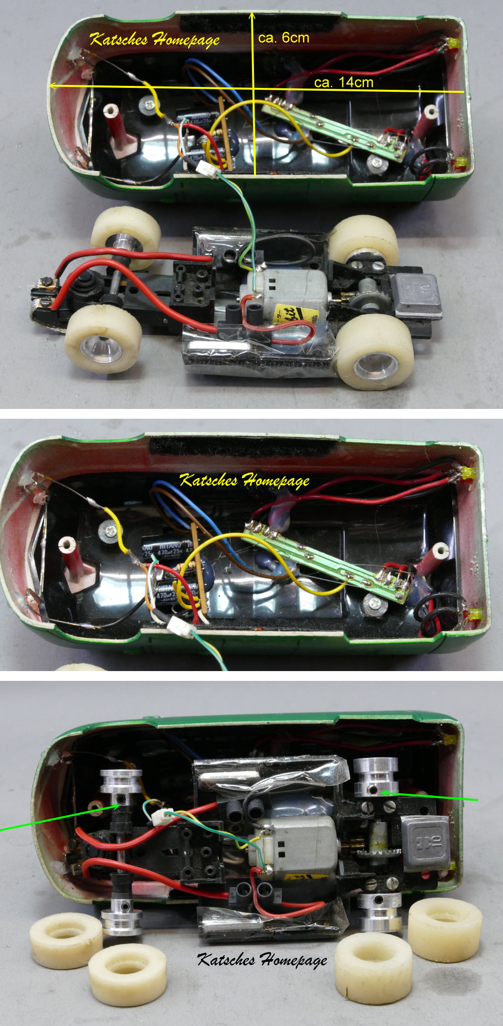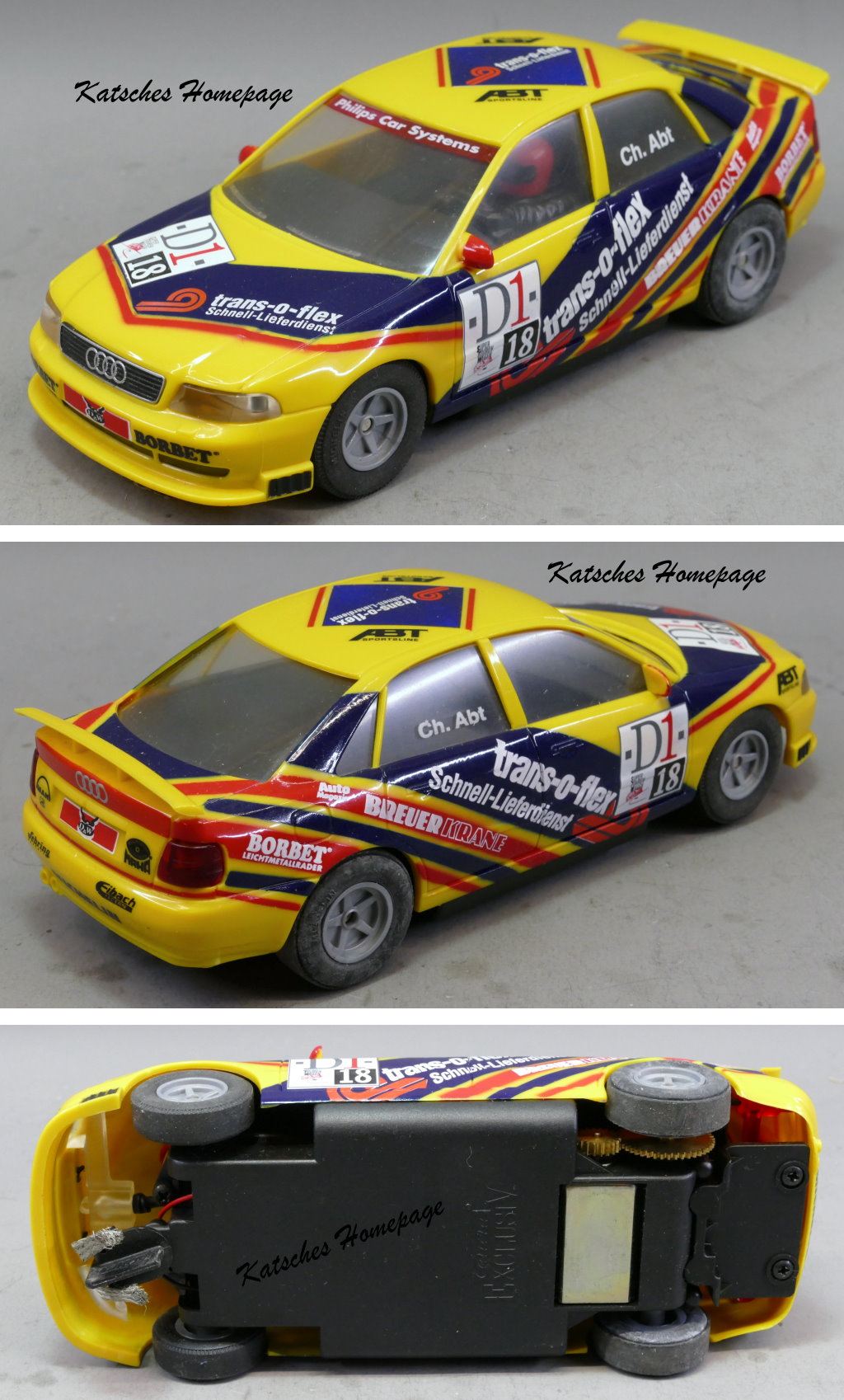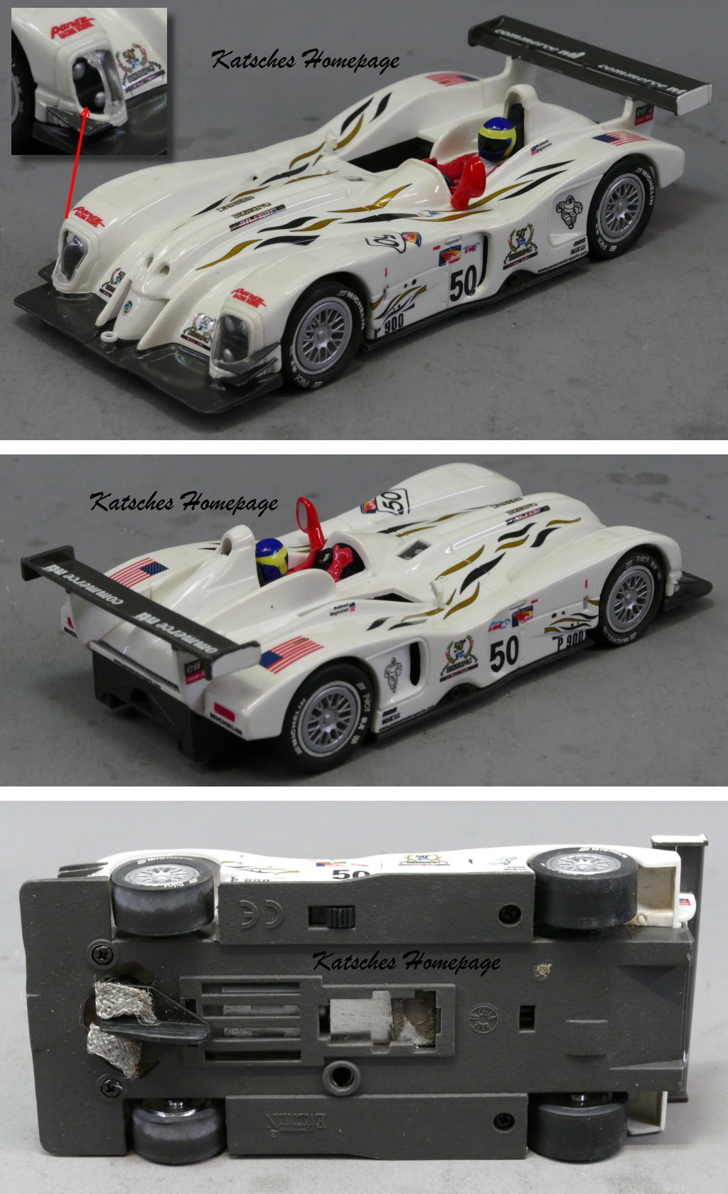 - Chassis: Carrera Universal, mit 2-Leiter-Leitkiel, Rückbau auf UNI-3-Leiter
