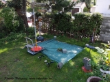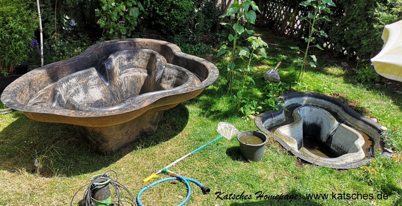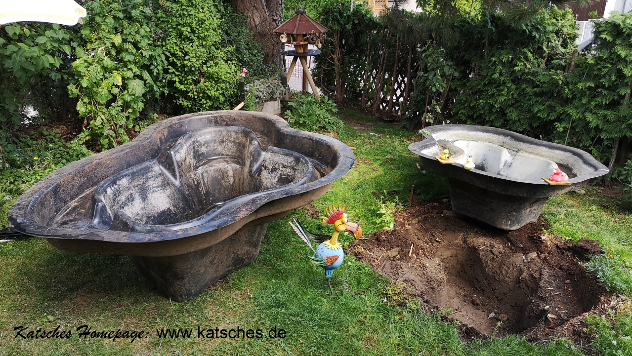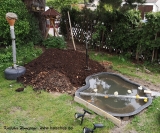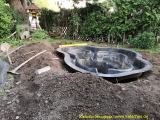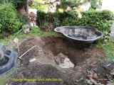 alte Teichwanne geleert die neue Wanne wartet |