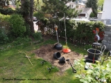 Humus verteilen und Gras sähen |