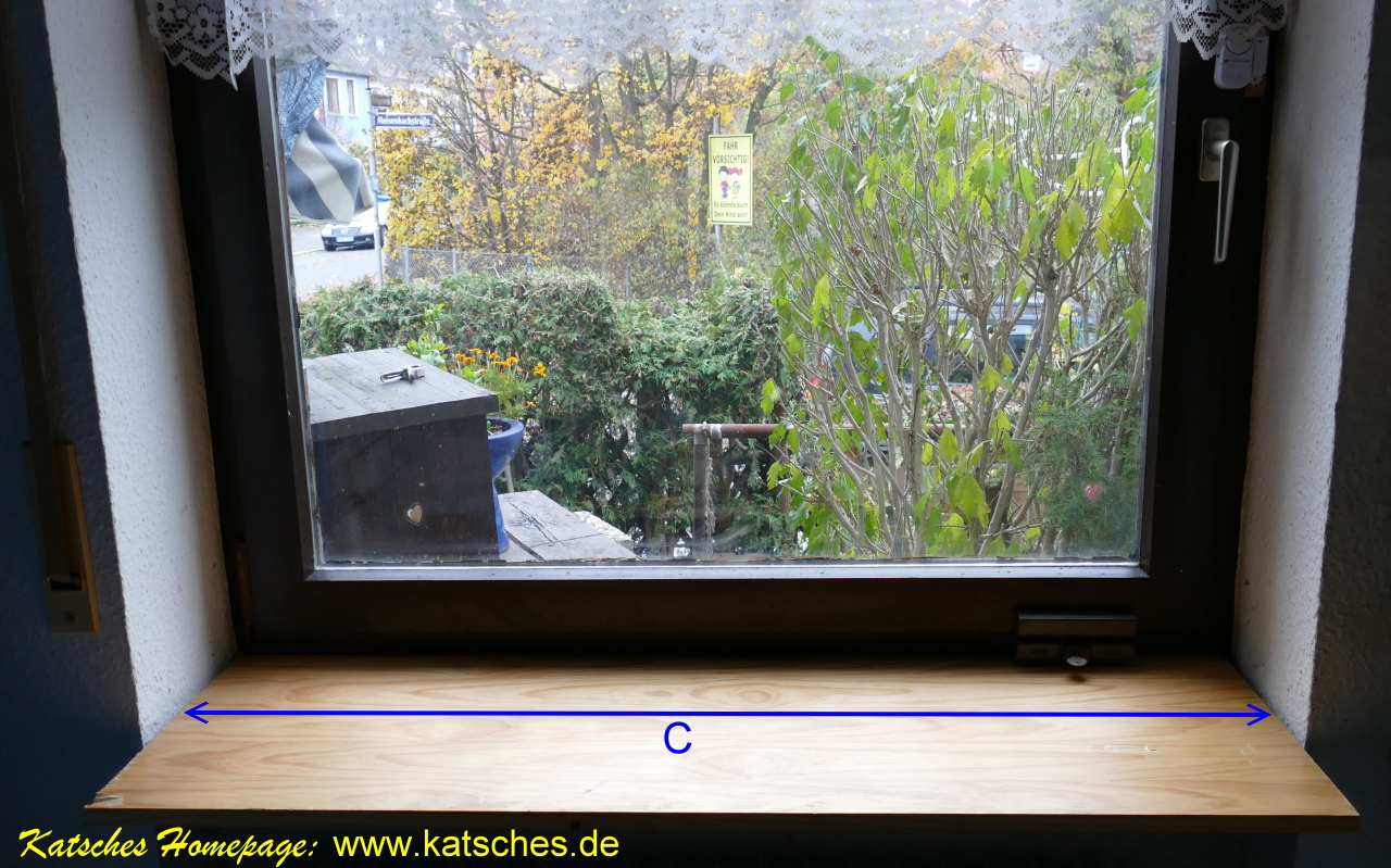 - neues Fensterbrett zuschneiden: Breite C 1cm schmäler als die Fensterbreite B